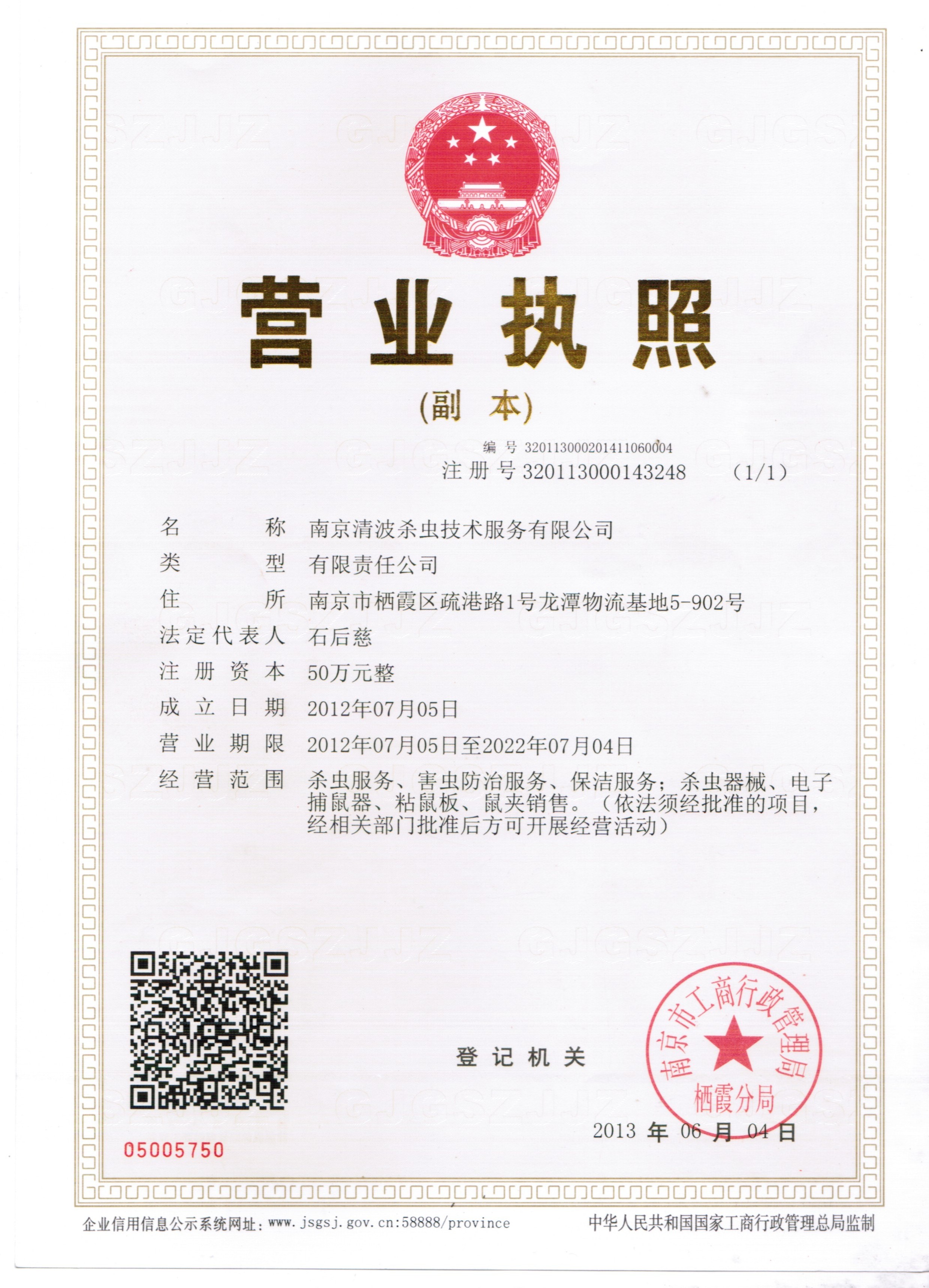 熱烈祝賀南京清波殺蟲技術(shù)服務